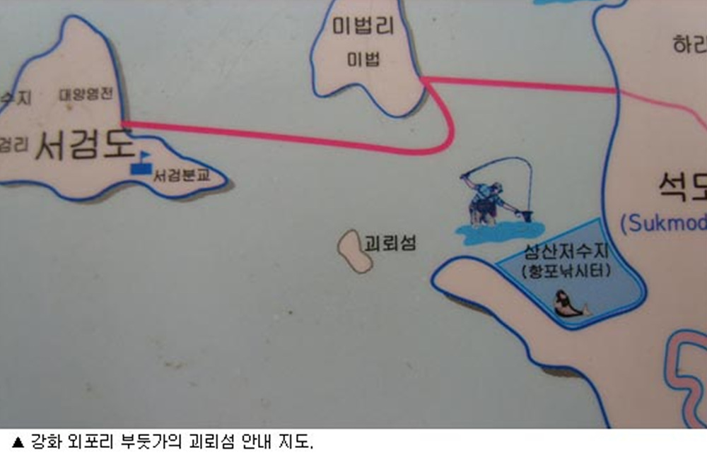 강화에는 괴뢰 섬이 있었다. 괴뢰란 꼭두각시를 뜻한다. 괴뢰섬은 미법도에서 서검도 사이에 있는 무인도다. 지금은 한전 송전탑이 섬의 절반을 차지하고 있다. ‘삼산면지’에 따르면 괴뢰섬은 본래 귀아리 섬이었다. 한자로 옮기면서 귀하도(歸下島)가 됐고 간첩 사건이 발생한 뒤 괴뢰섬이 됐다. 지금은 괴리섬으로 부른다.